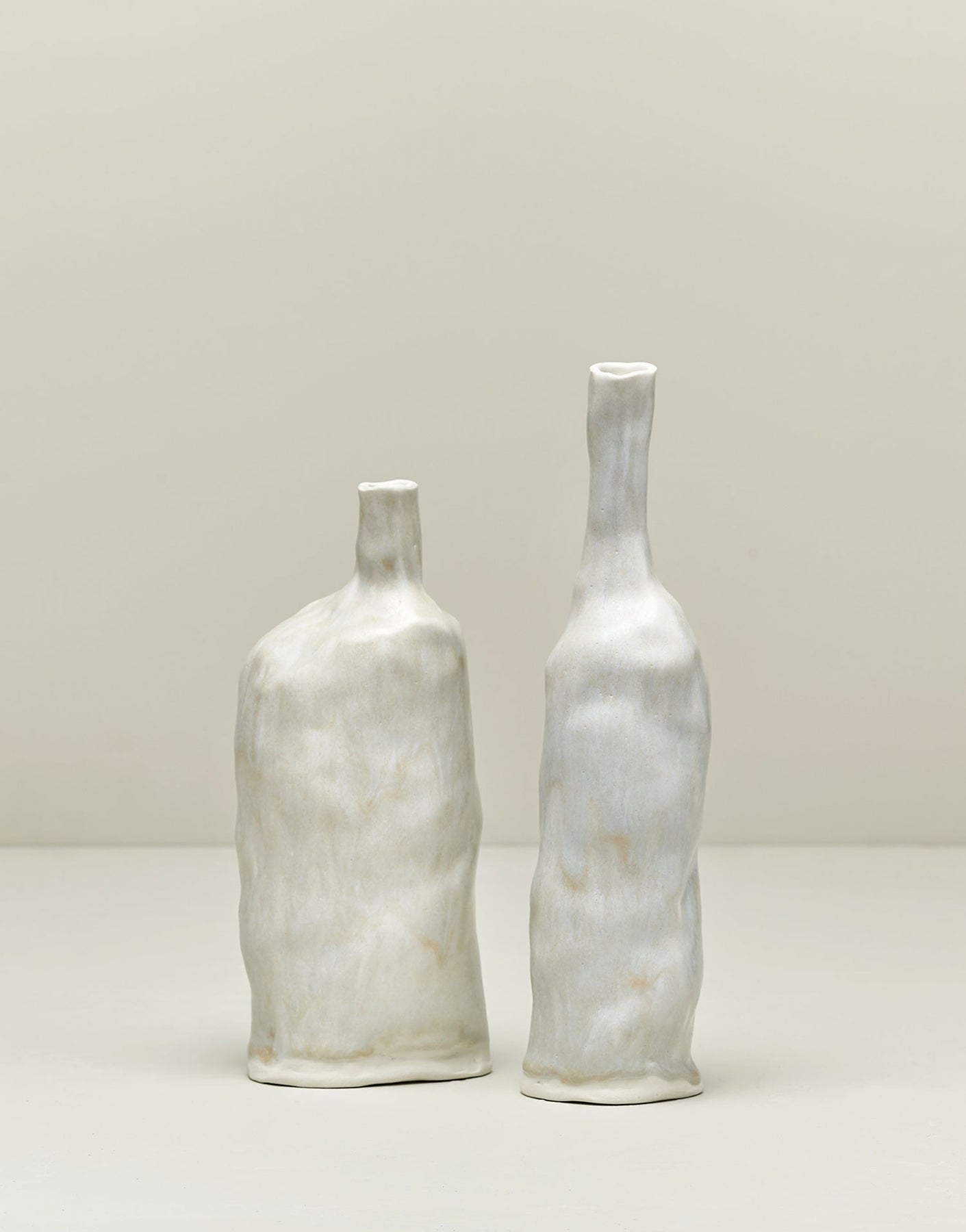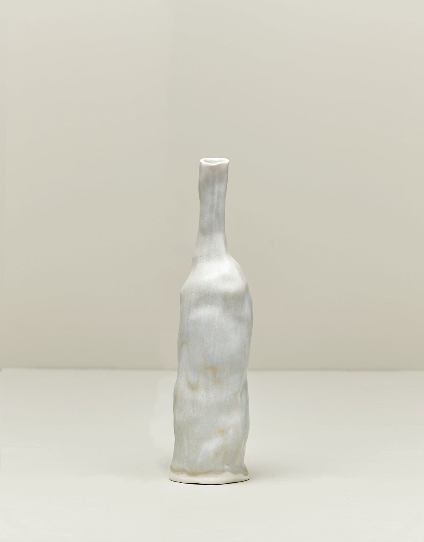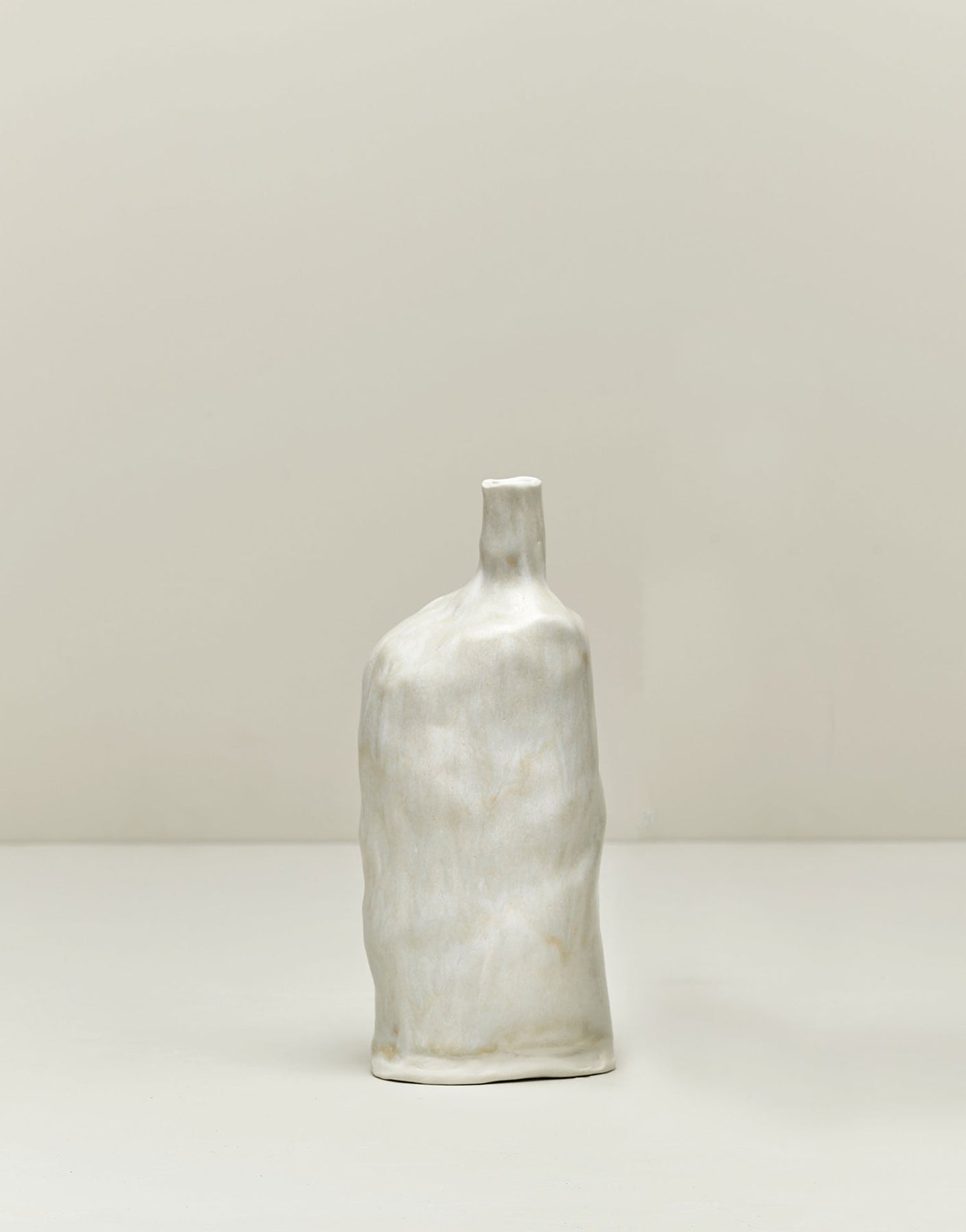 Each of these one-of-a-kind bottles was formed entirely by hand, the shape emerging naturally as porcelain slabs were layered and joined. The glaze was brushed on in soft, shifting layers, revealing subtle variation in tone and texture. Sculptural yet simple, they carry the quiet beauty of process and presence. Each piece is signed by the artist.