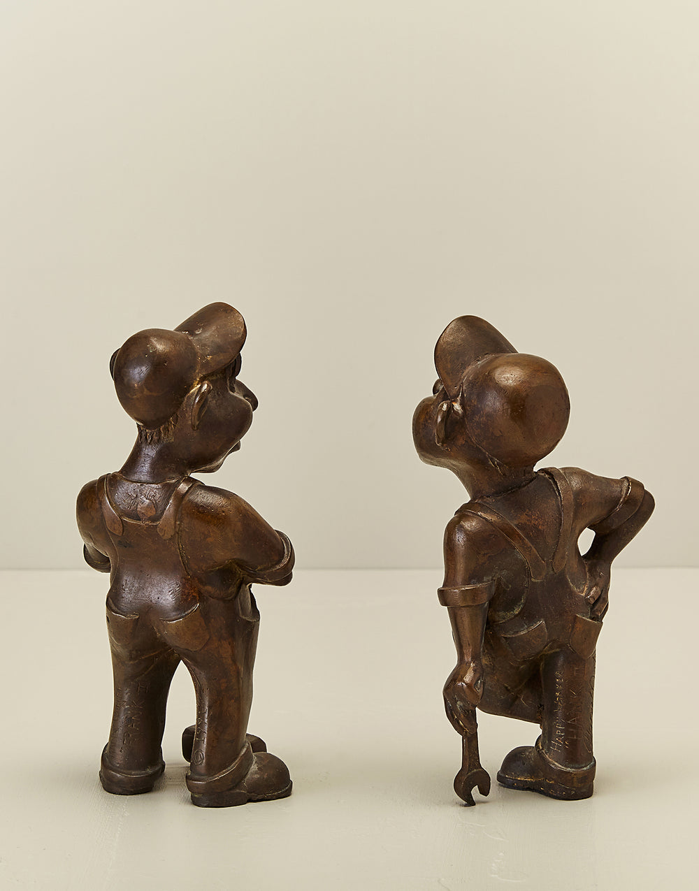Taken from the molds of the 1991 original sculptures shown and sold at 303 Gallery in NYC, these figurines of Hank + Frank have been reproduced as a small run cast in bronze by the artist, Daniel Oates.